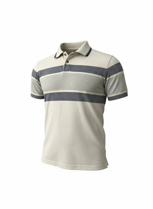 Men’s Premium Beige Striped Polo T-Shirt – Smart Casual Cotton Tee