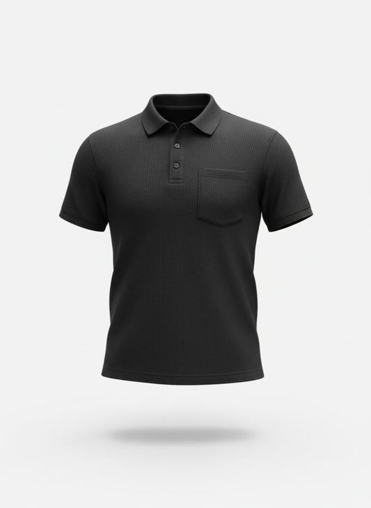 Men’s Black Button Polo T-Shirt – Premium Textured Casual Polo